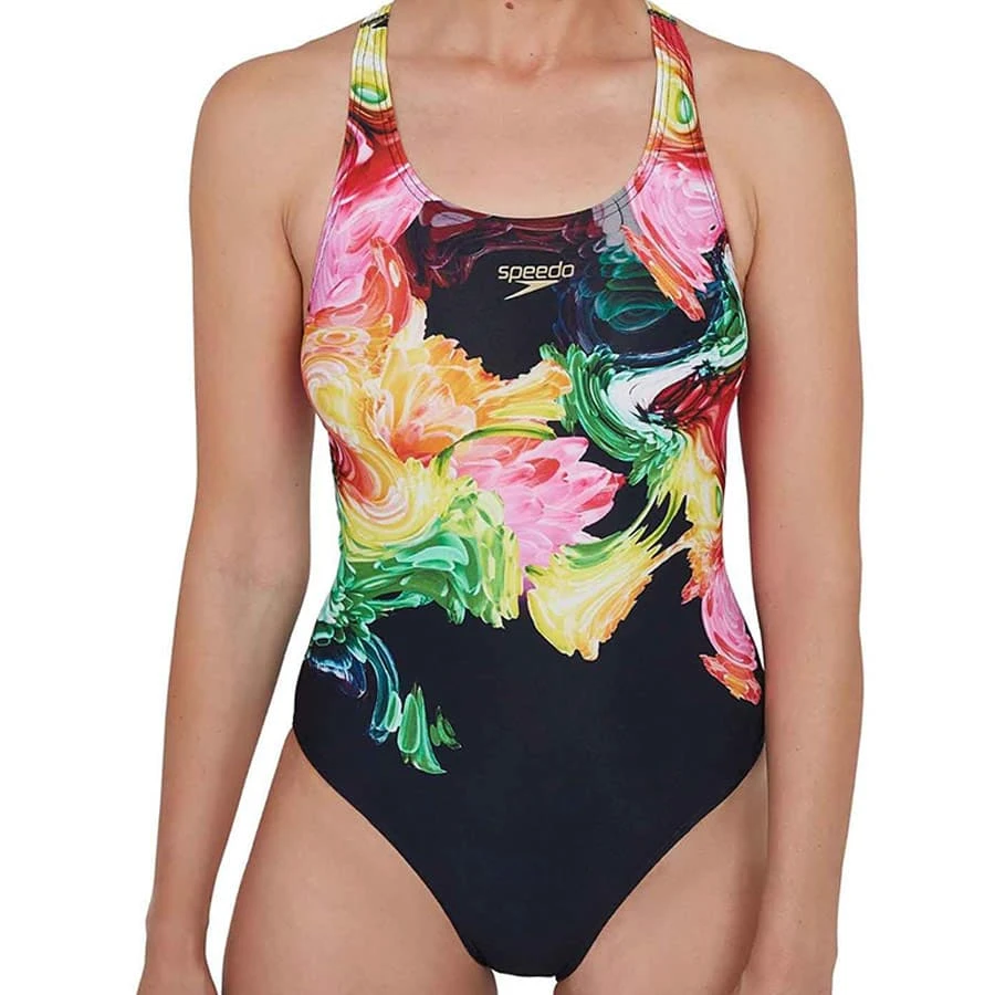 | Farben | Speedo ColourBlend Placement Digital Powerback Damen Badeanzug schwarz/rosa/gelb, Speedo Placement Digital Powerback Damen Badeanzug schwarz/blau/rosa |